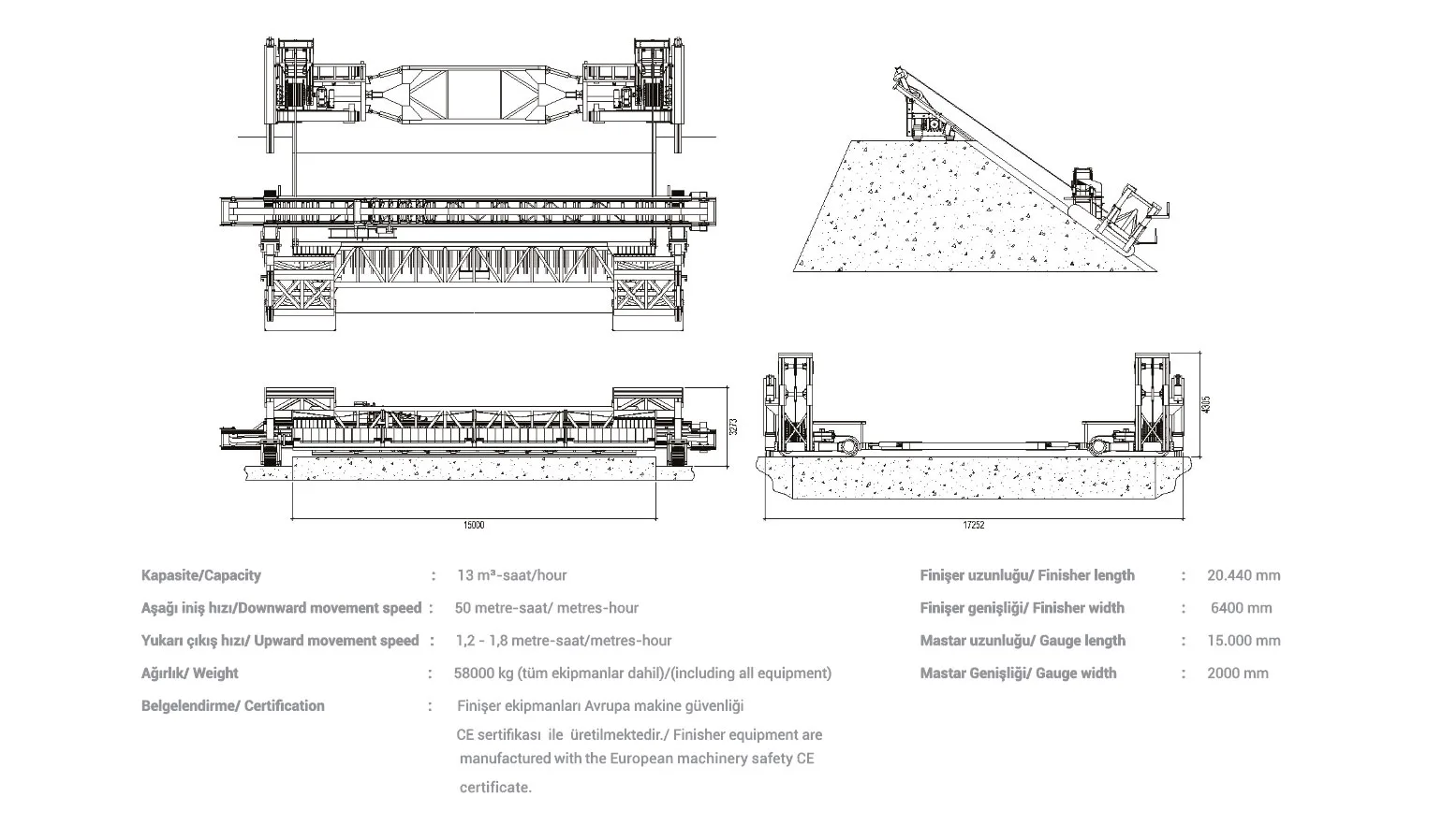 The finishing screed is 2 meters long and 15 meters wide. Its width is adjusted according to the main width. The finishing screed has three functions in concrete pouring.